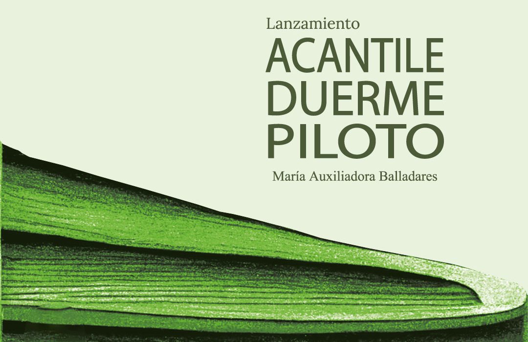 Acantile duerme piloto (90 páginas) abre nuestra colección Esquivas -cartas, poemas y otras misivas- y es el cuarto poemario de María Auxiliadora Balladares (Guayaquil, 1980). Este libro contiene doce poemas de amor, cada poema está ambientado con un epígrafe y el extracto de una canción.