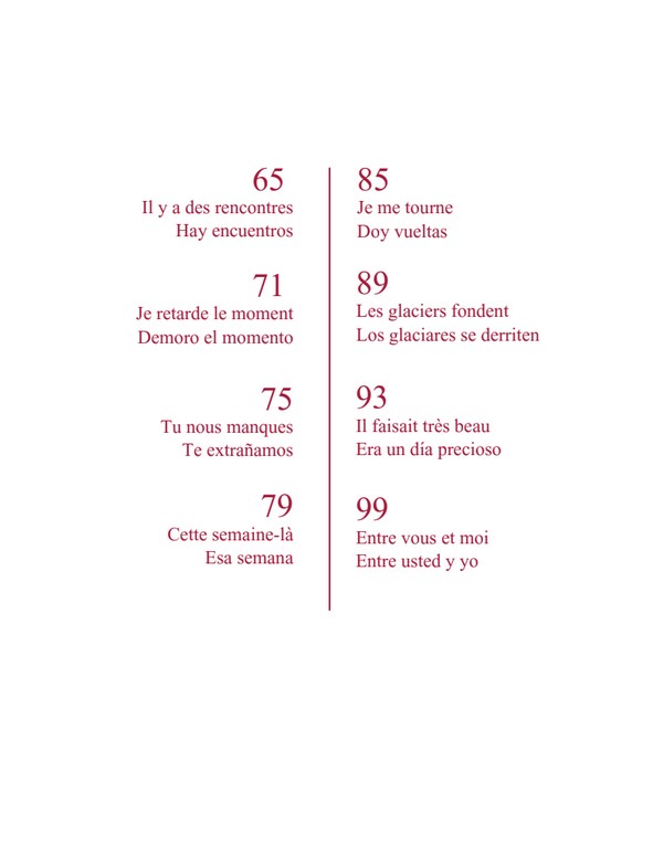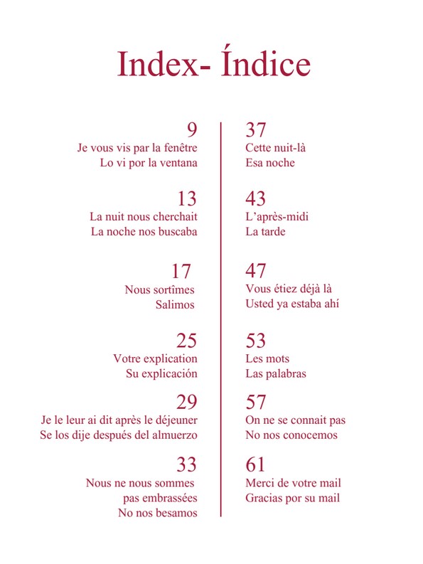 Además, esta escritura bilingüe español – francés se confronta a la traducción entre las distintas formas e intensidades de cada lengua, con sus cercanías y sus distancias, como sucede también en la diversidad del encuentro y en la experiencia del amor.